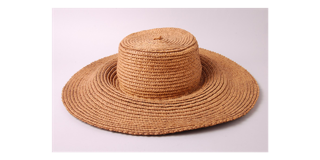 "Hat made of leaf (palm), wood, thread (fibre, )." Measures 9cm (H) x 37.5cm (W) x 37.5cm (D) [Measurements taken from the British Museum online collections database]